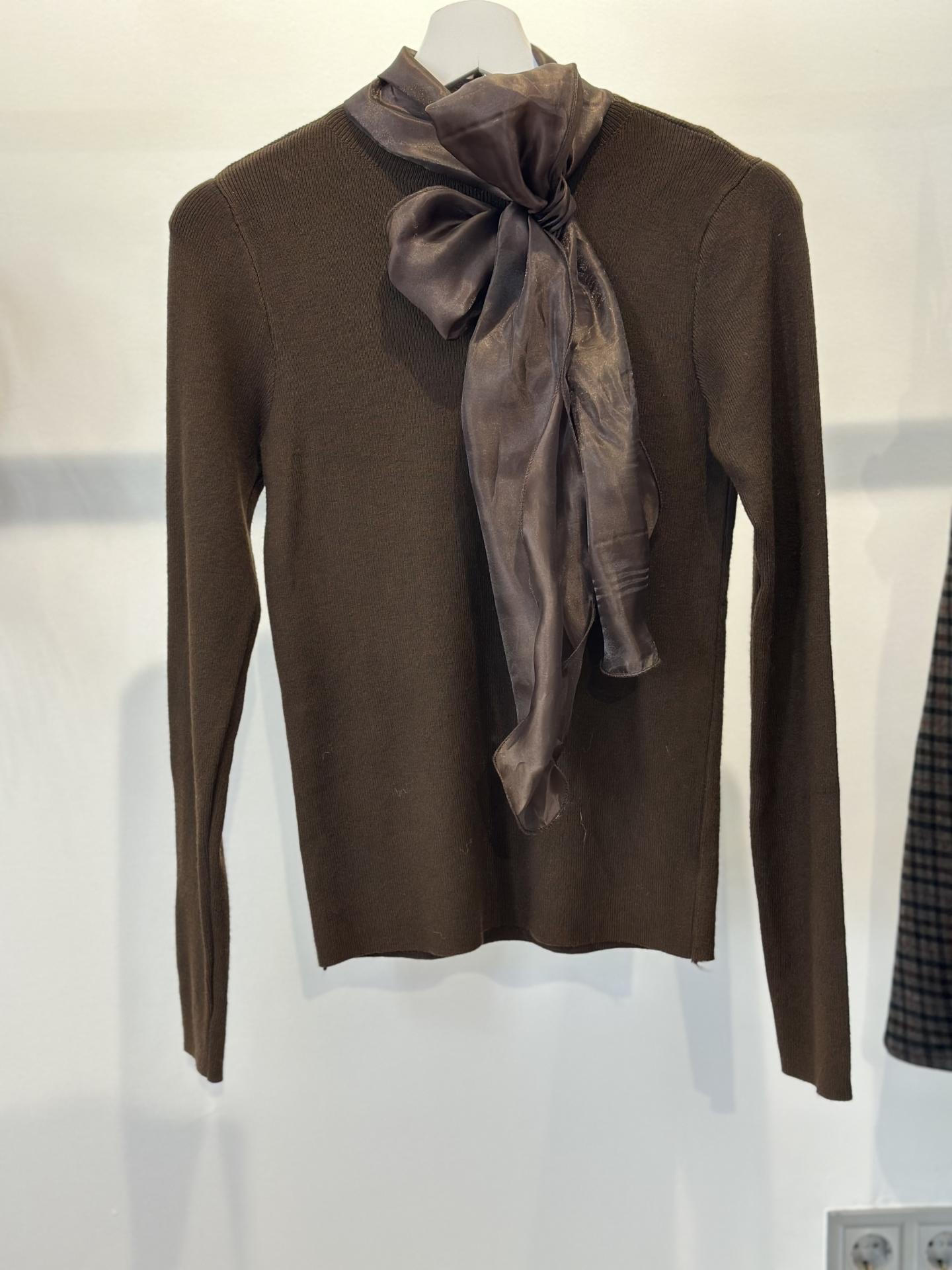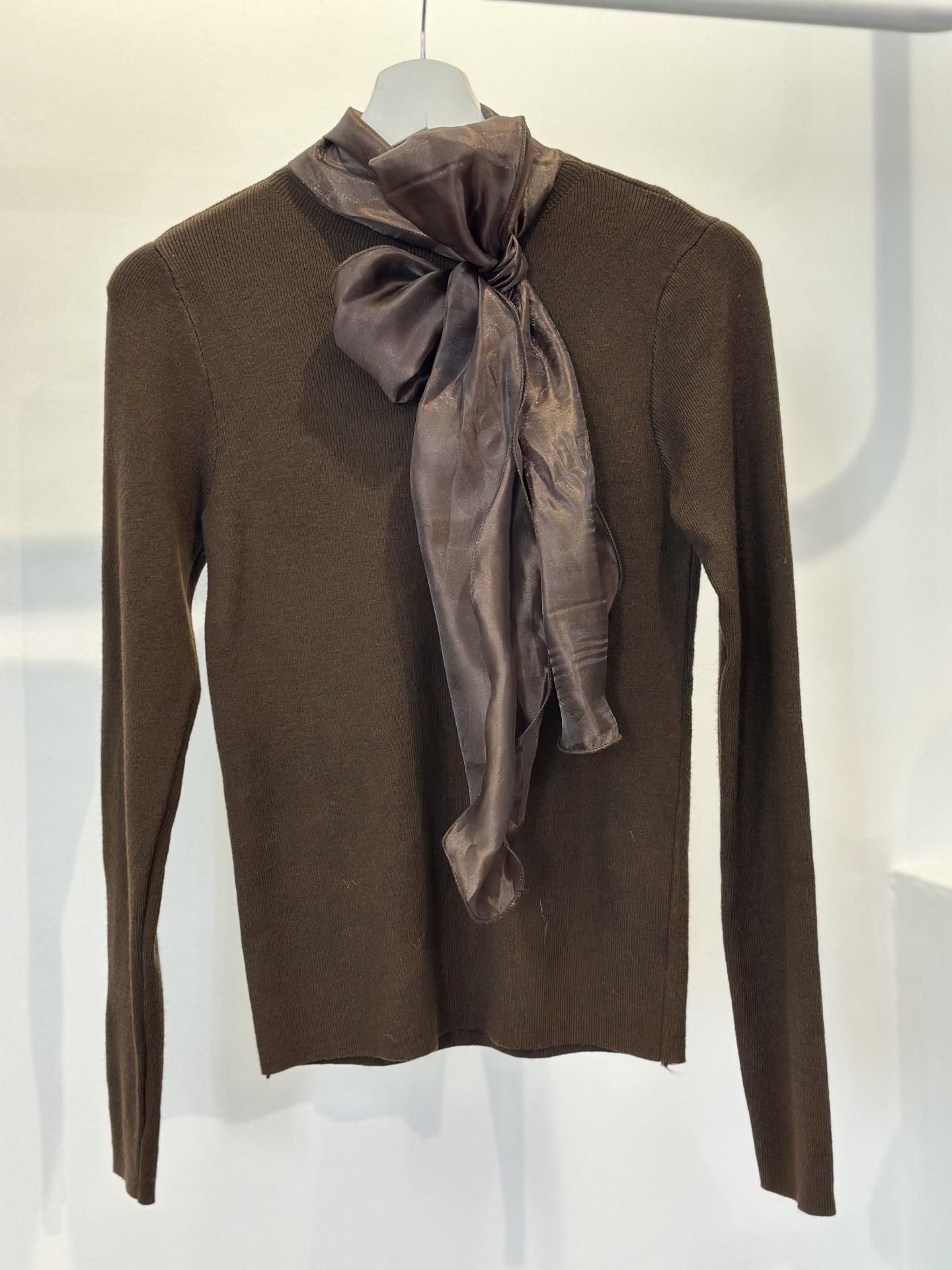 Jersey de punto canalé muy agradable con lazada de gasa al cuello.