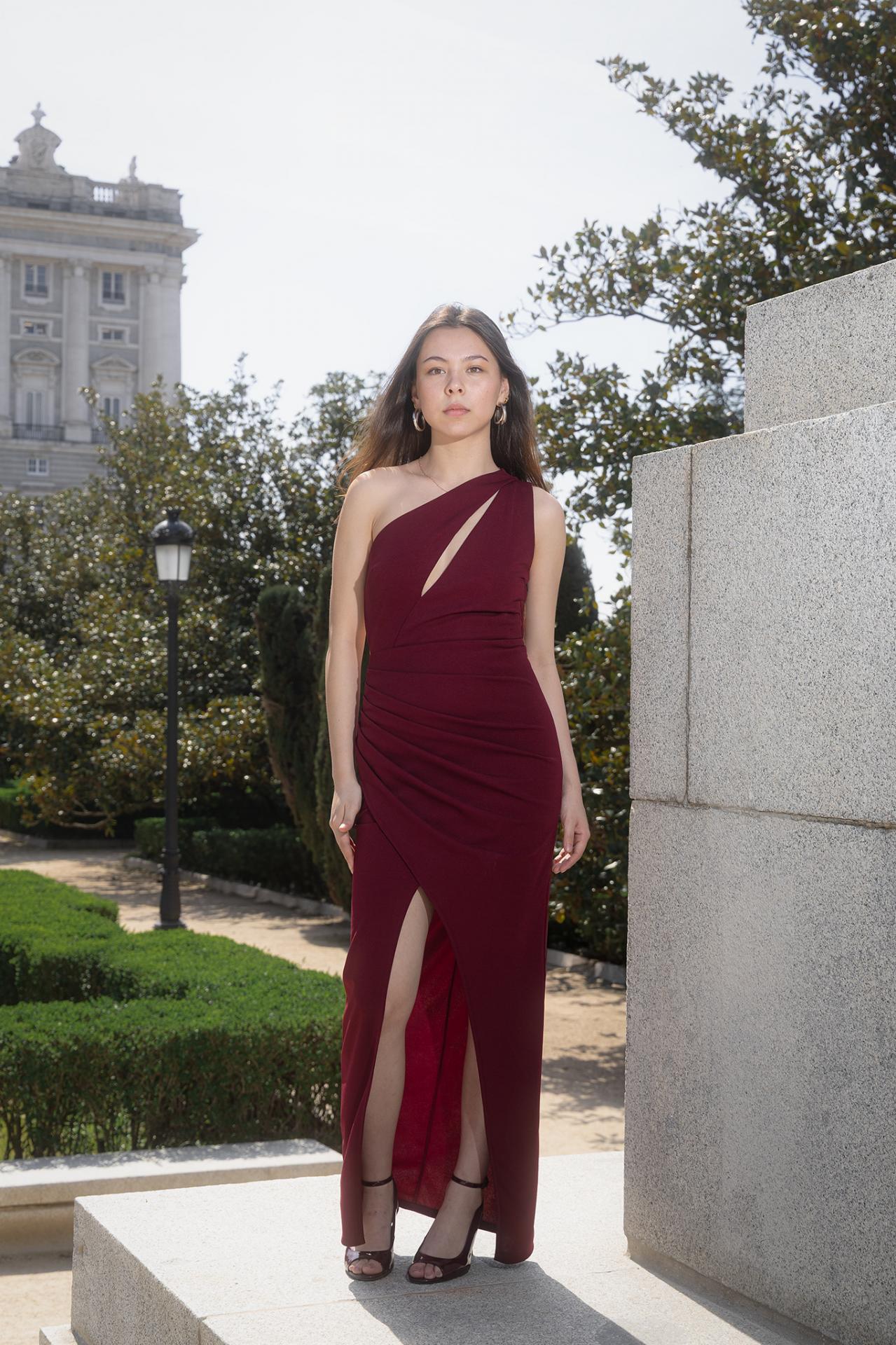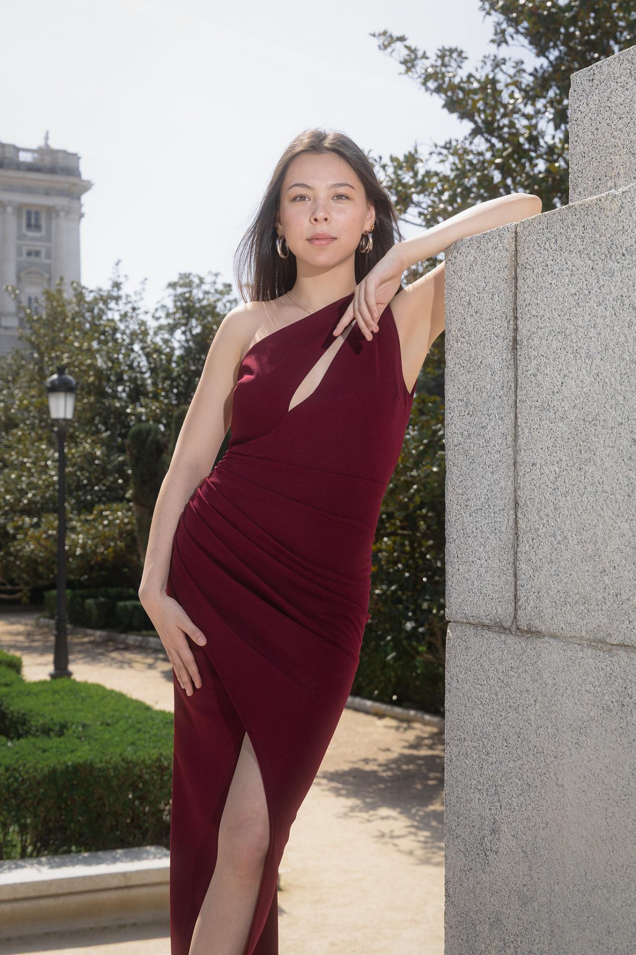 Vestido asimétrico en la espalda con tiras que cruzan.