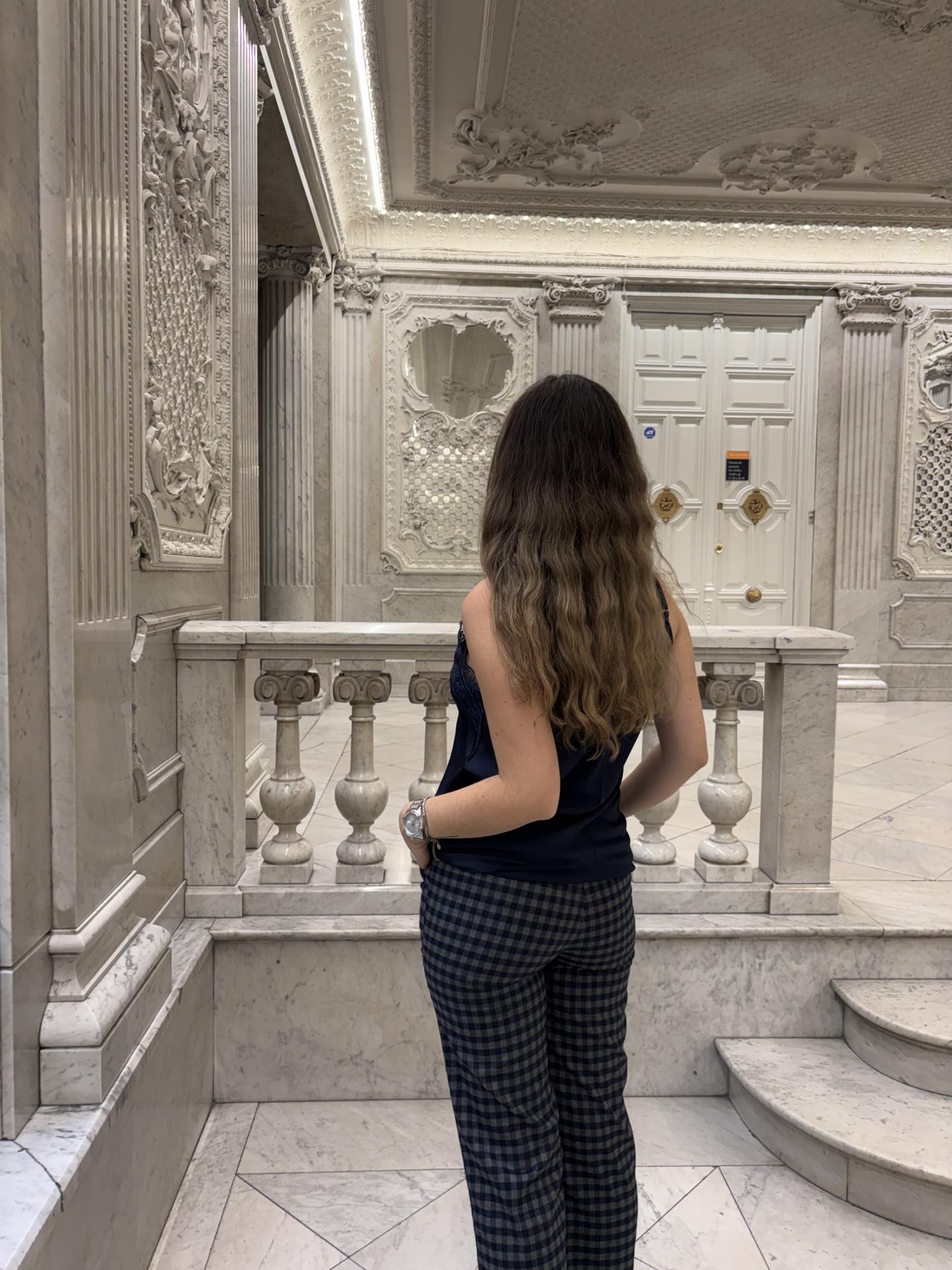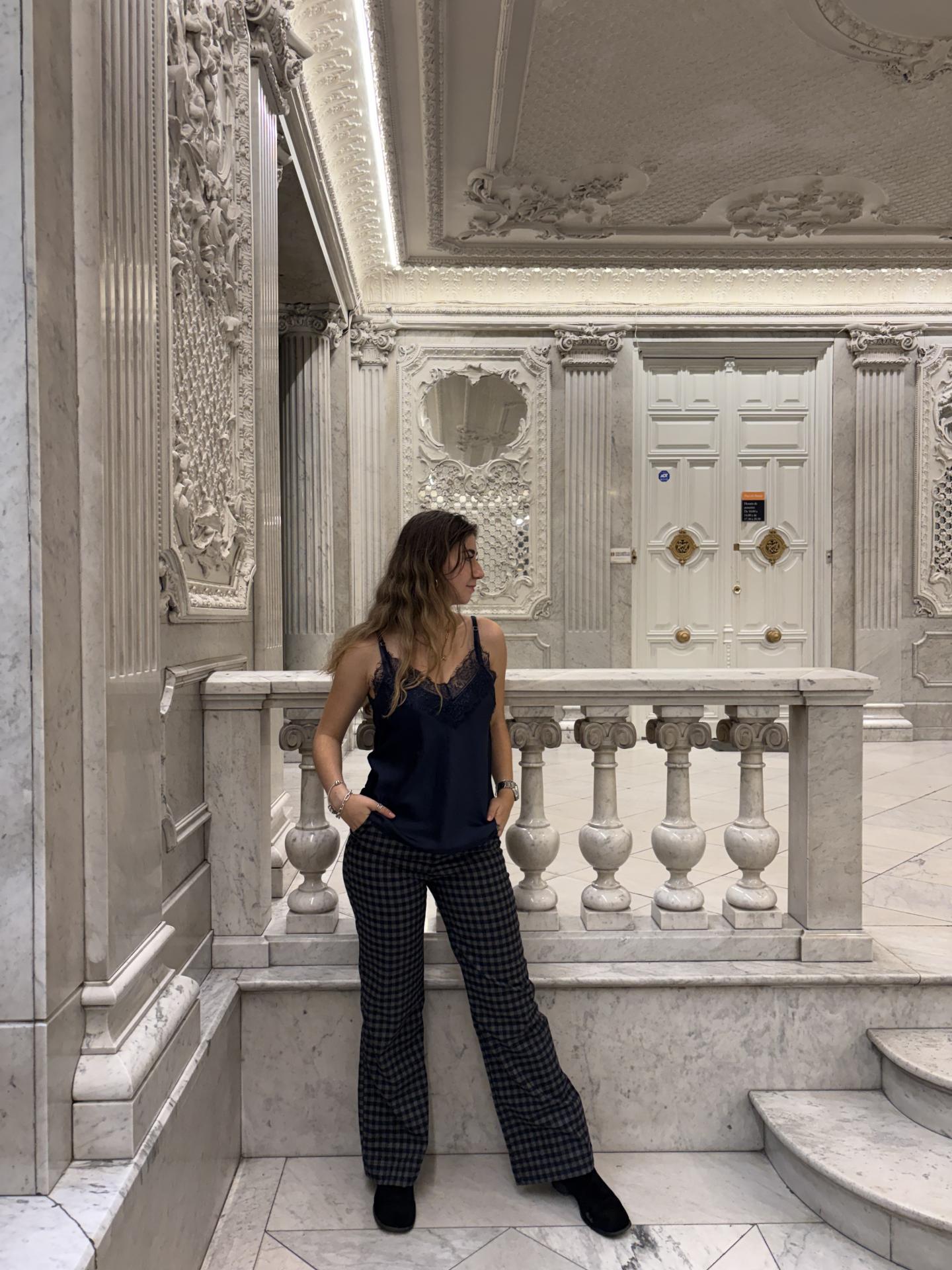 Espectacular pantalon recto vichy, en color azul y gris.