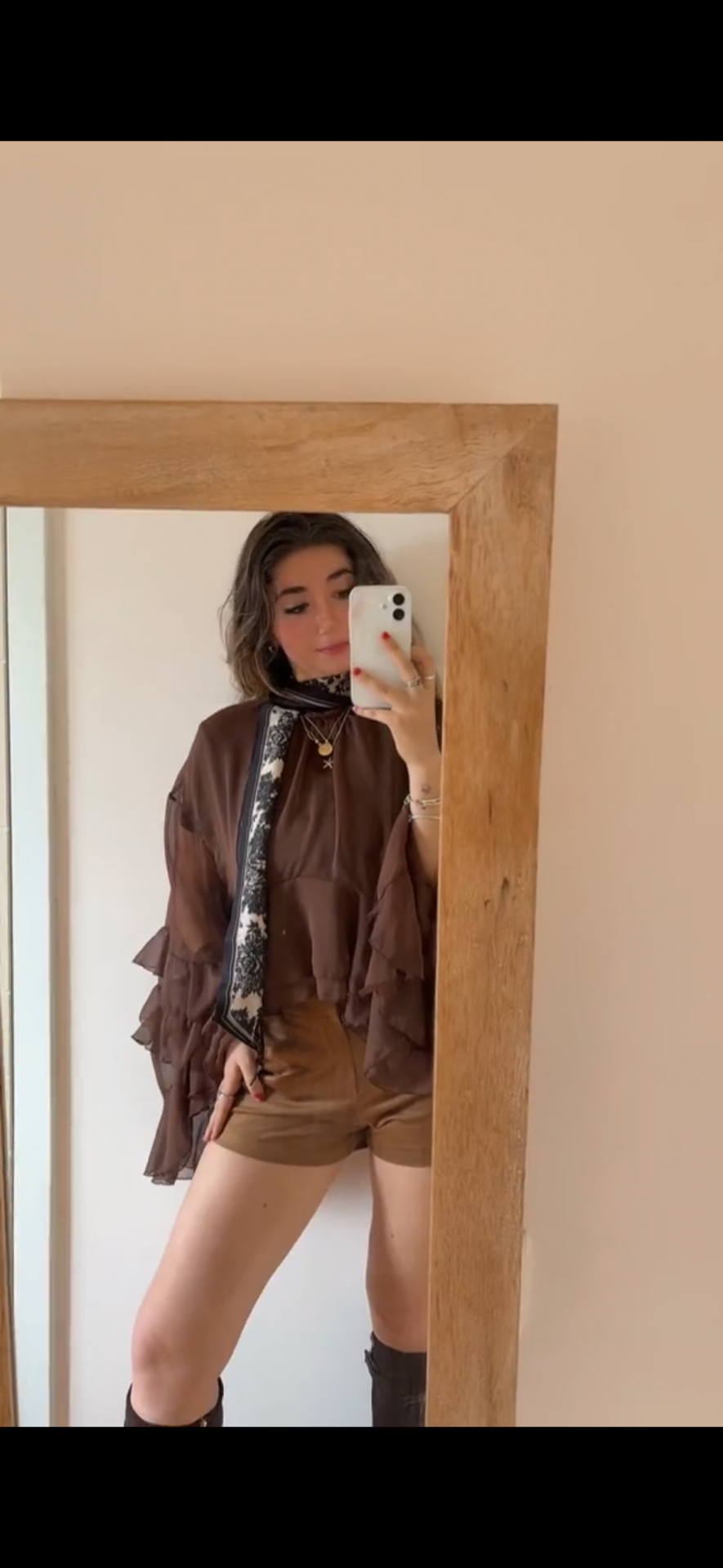 Pañuelo de seda para el cuello reversible en dos colores en negro y chocolate. El pañuelo en color negro tiene letras por un lado y por el otro un estampado floral en negro. Y el pañuelo color chocolate tiene letras por un lado y por el otro un estampado con formas en uve.