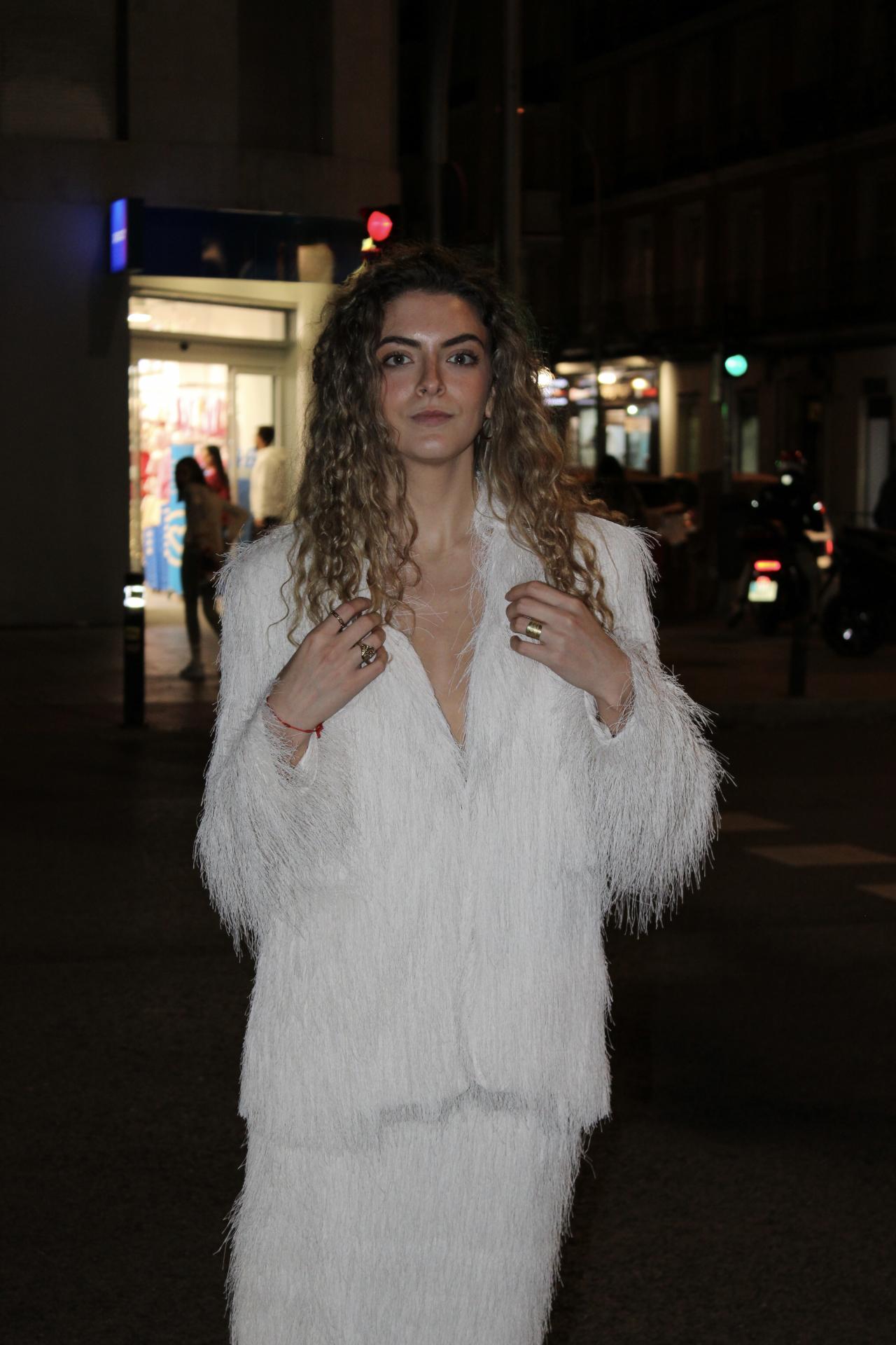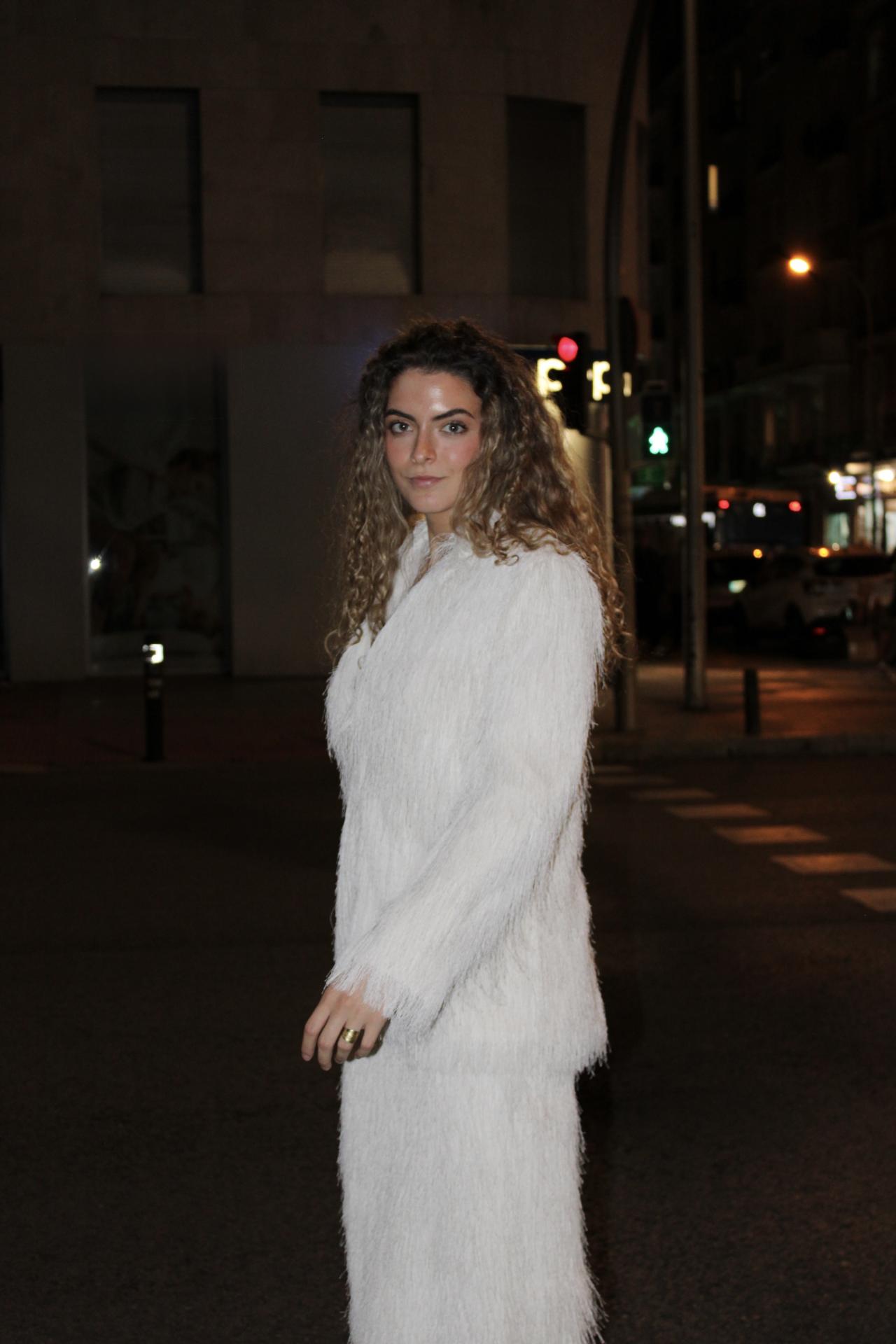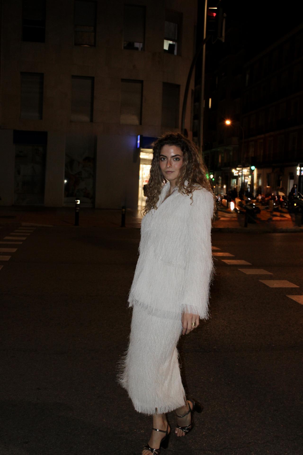 Maravilloso conjunto falda tubo y blazer flecos de hilos blanco roto con mucha caída y ligereza roto que hacen de esta prenda tan especial con blazer a juego, va forrado
