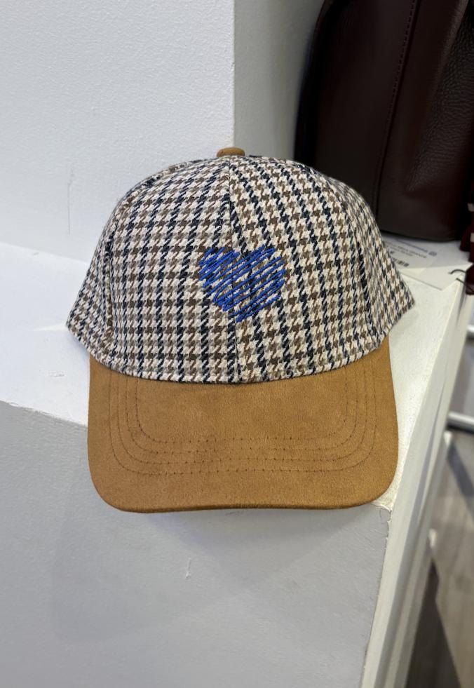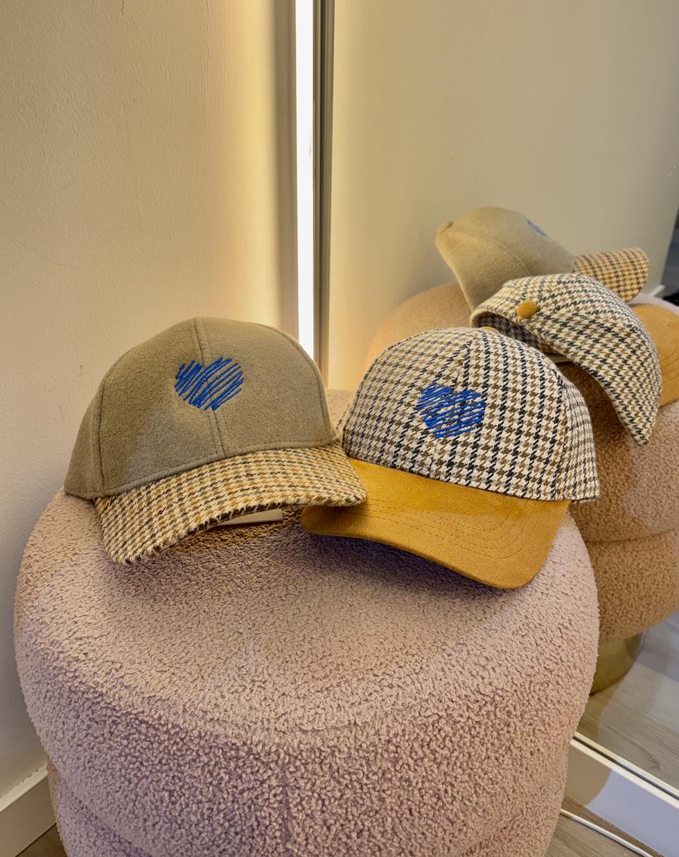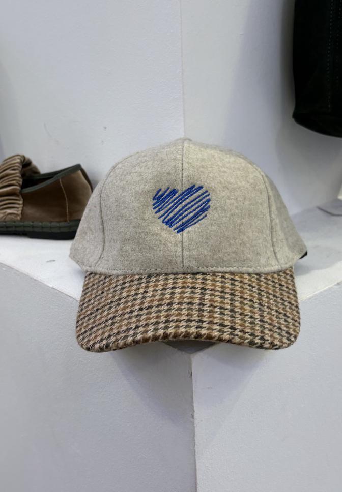 Gorra de lana con casquete colores (blanco, verde, choco, beige, gris)con corazón de Sesamo by Marta y visera pata de gallo.