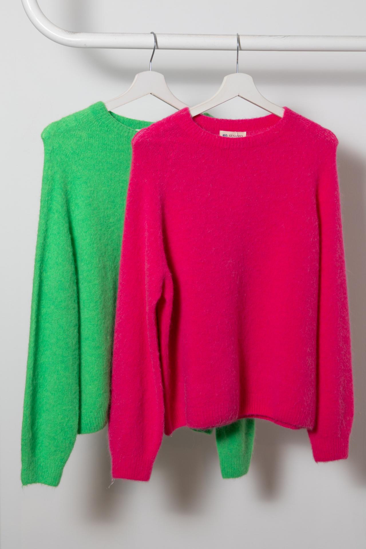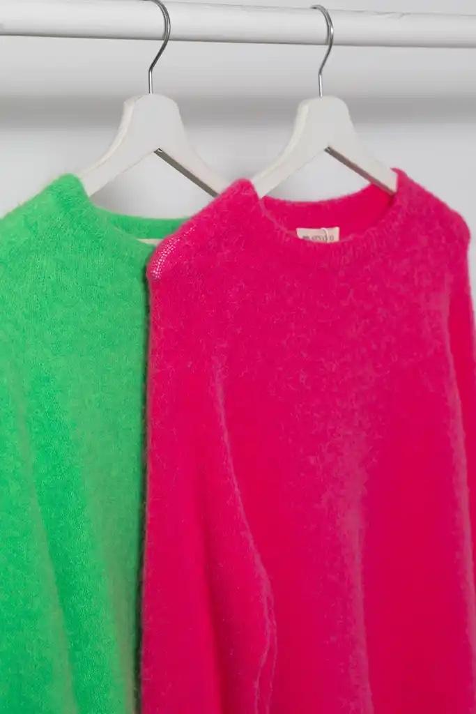 Jersey de punto ligeramente anchito, con cuello redondo y en colores flúor.