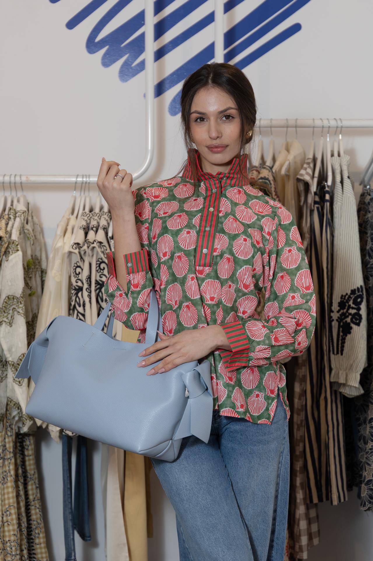 Bolso de piel, tipo shopper en tamaño grande, con nudo en los laterales. Disponible en varios colores.