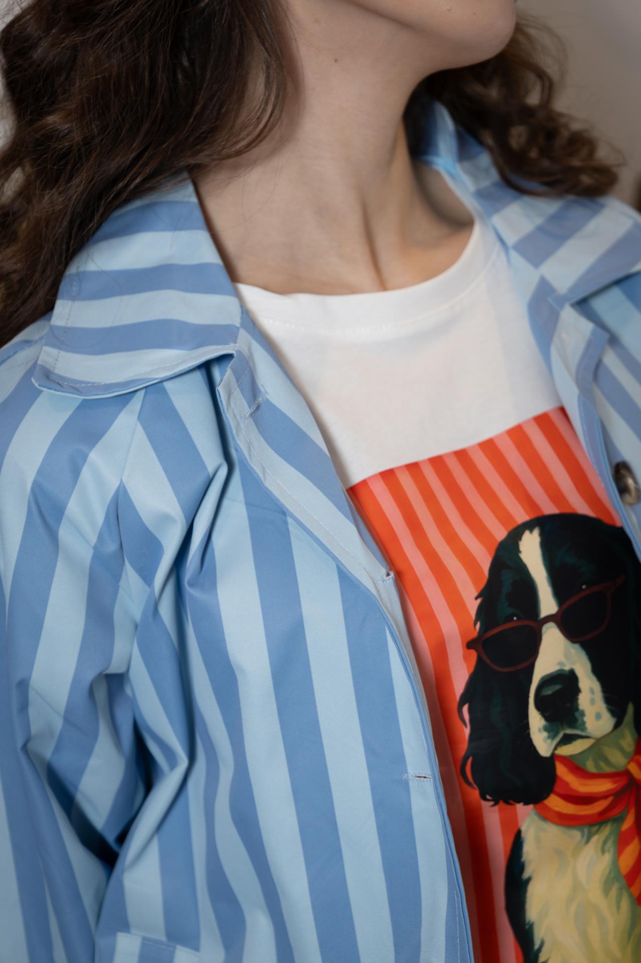 Nuestra original blazer de tejido impermeable y forrada, con diferentes estampados y en un lado el logo de sésamo. Tiene bolsillos.