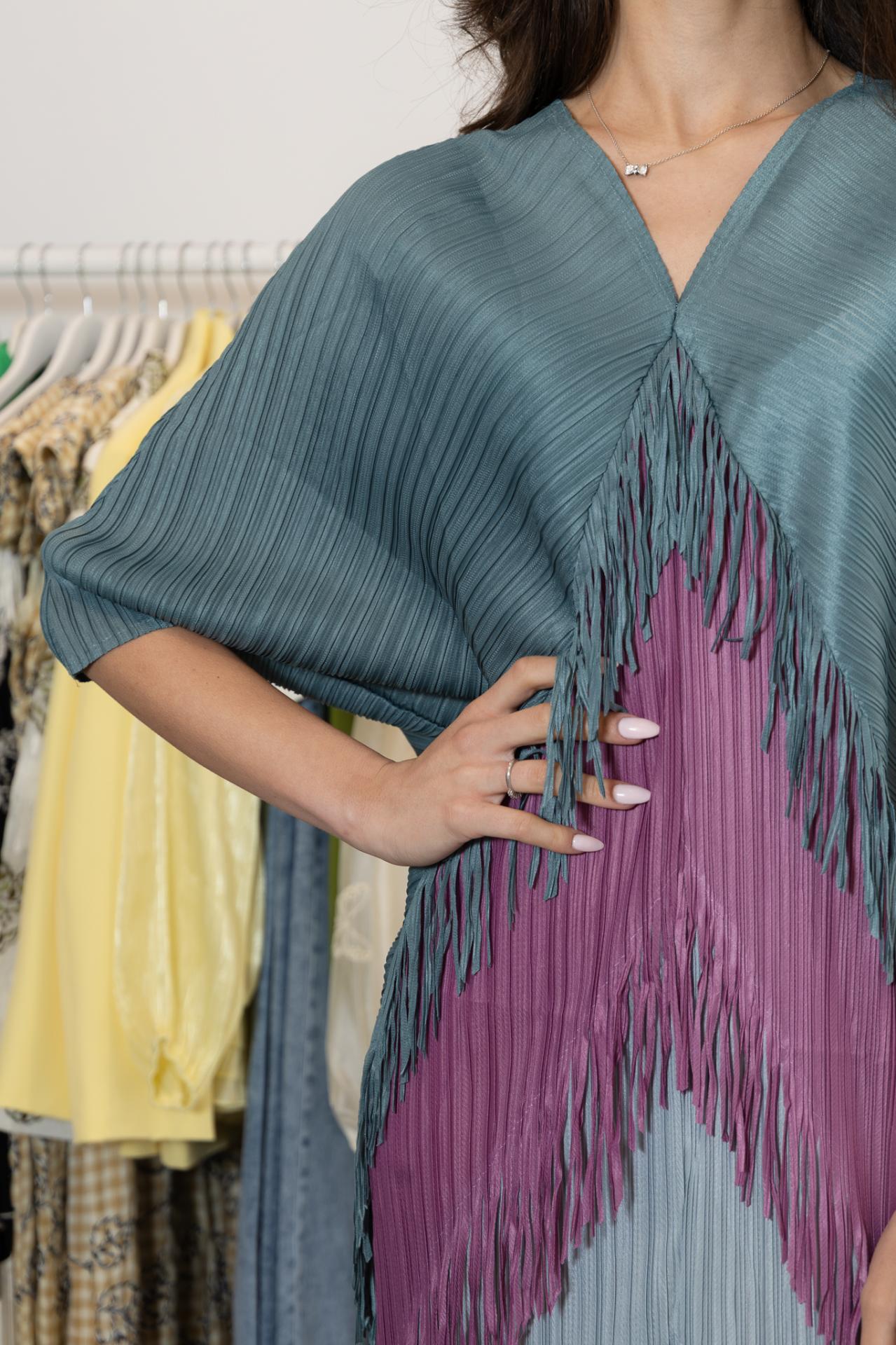 Espectacular vestido plisado de flecos, en degrade de color chocolates a tierras con cuello en pico, talla de la talla 34 a la 44 sin marcar nada, sienta increÍble.