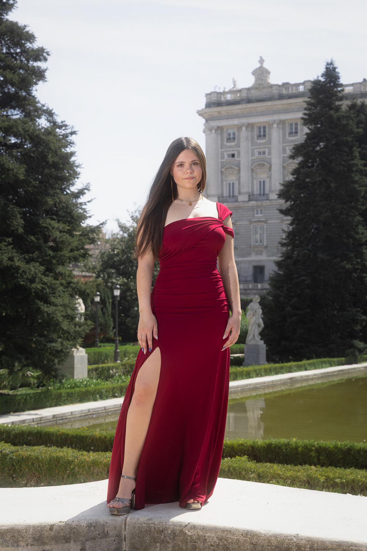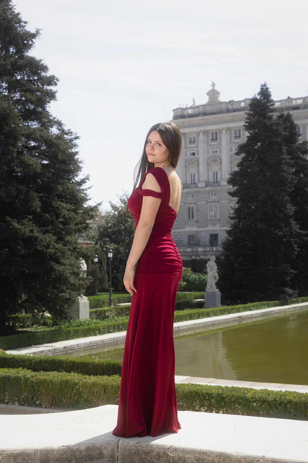 Vestido largo ideal para evento. De tirante cruzado sobre un hombro, la zona del torso va drapeado y parte de la espalda fruncida. Con abertura por delante de una pierna y preformado en el pecho.
